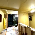 土間コンクリートの打設を終え、ウッドデッキの施工に入ります。